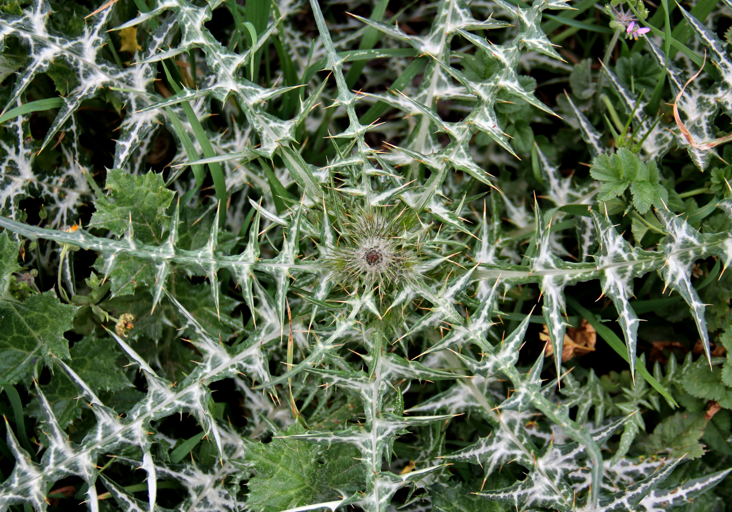 Ohdakkeet ja muut piikikkäät kasvit ovat olleet minulle maanvaiva Málagan vuoristoisella maaseudulla kulkiessa. Piikikkäät kasvit saavat varmaan suojauduttua hyvin lampaiden hampailta ja ne varmaan sopeutuvat hyvin kuivaan murenevaan maahan, mutta ne harmittivat kovasti asuessani Torcal-vuoren juurella. Piikikkäiden kasvien takia ei ollut paljoa menemistä semmoiseen maastoon, jossa ei ole valmiiksi polkuja. Ensinnäkin piikit ovat vahingollisia koirien tassuille ja toiseksi ne pureutuvat omienkin kenkien pohjiin. Toukokuussa El Torcal -vuorella ohdakkeet ynnä muut piikkipensaat reunustivat polkuja siihen malliin, että olisi pitänyt helteessä olla jotain paksua vaatetta yllä, jotta olisi ollut suojassa naarmuilta ja pistelyltä.