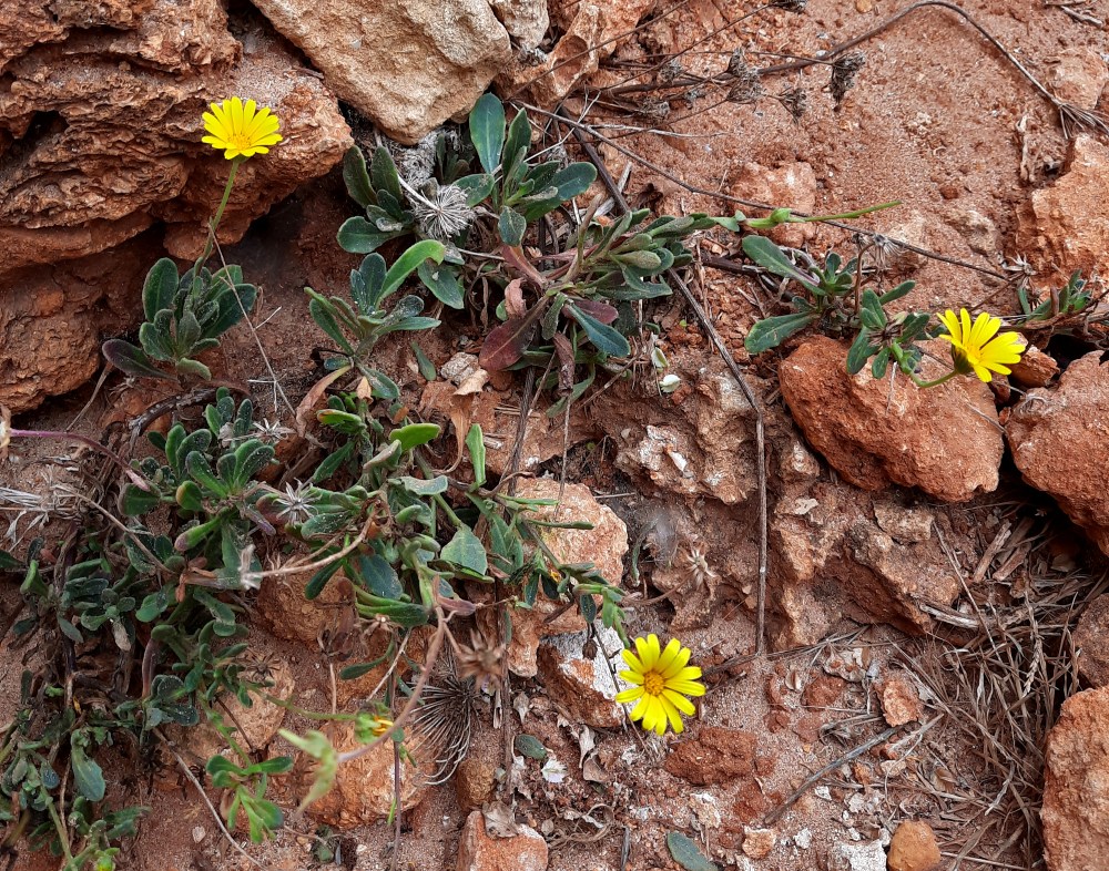 Nahkealehtinen varpukehäkukka Calendula suffruticosaCadizin Rochen rannan tuntumassa lokakuussa 2024.
