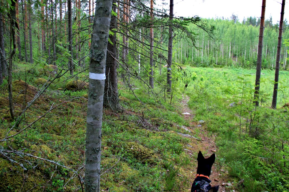 Kyltti polun alussa. Myös Ihamaniementieltä kääntyvässä tienhaarassa on kyltti.Ihanamaniemen luontopolun kartta.Ihamaniemen luontopolku ei ole maisemiltaan mitenkään päräyttävä, mutta olen onnellinen polun olemassa olosta, sillä koiramme kävelevät niin paljon määrätietoisemmin metsäpoluilla kuin hiekkateillä. Kunpa tälläisiä löytyisi lisää!Polku on merkitty valkoisella maalilla ja valkoisin paperimerkein.Suovehka (calla palustris) ojassa, joita on juuri oikopolun risteyksen jälkeen. Ei kannata lähteä oikopolulle, koska sen jälkeen tulee reitin parhaat osuudet, kun on pitkospuuta ja vähän matkaa niiden jälkeen mukurakuuset.Koirat ojalla.Tupasvilloja.Koirat pitkospuilla.Suopursun tuoksuvia kukkia. Reitillä on joitain opastauluja ja niissä näitä kutsuttiin englanniksi villirosmariineiksi.Mukurakuusi.Toinen kahdesta mukurakuusesta.Mukurakuusten jälkeen kävellään hetki tällaista metsätietä ja sen jälkeen hiekkatietä, kunnes polku taas sukeltaa metsään.Virna, ehkä aitovirna (vicia sepium) hiekkatien varrelta.Näkymä polun varrella olleelta penkiltä. Reitillä on useita penkkejä levähtämiseen.Polun loppumetrejä.Polun lopussa bongasin suomalaisisen orkidean, valkolehdokin.Puolukan kukat.Vanamoita.Punatorvijäkälää.Metsätähti.Kangasmaitikka.