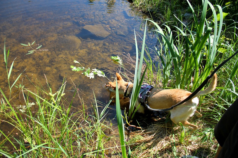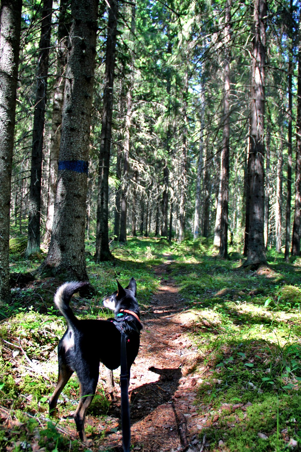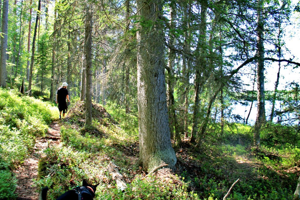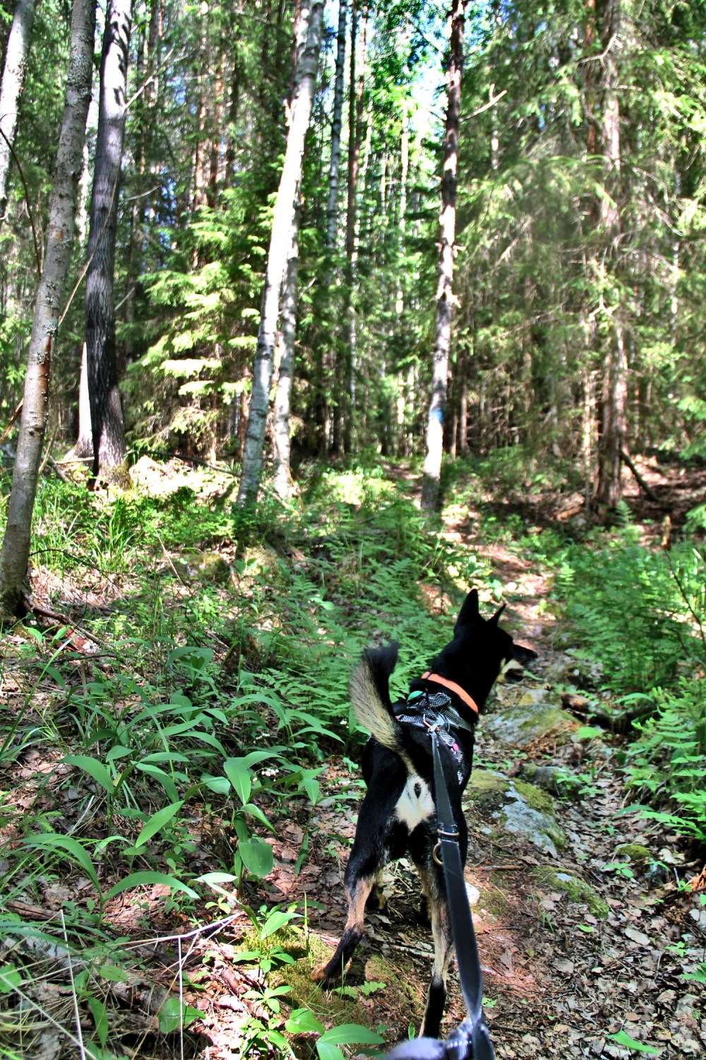 Matkalla on joitain kivisiä nousuja ja laskuja, joten polkua ei ehkä luokiteltaisi helppokulkuiseksi. Minun ainakin pitää olla kivikoissa varovainen, etteivät koirat nykäise minua mukanaan alas.