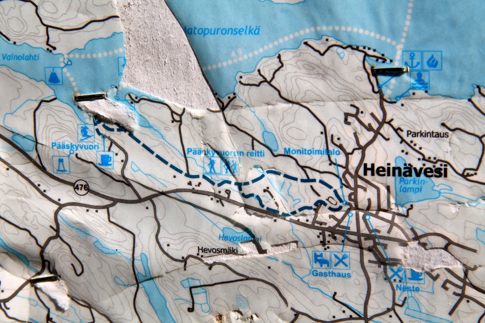 Pyylin polku sijaitsee Heinäveden isossa Pyylinsaaressa, jonka läpi kulkee Pyylintie. Heinävedeltä on 22 km Huutoniementien risteykseen ja siitä käännytään, kun halutaan polulle ja autiotuvalle. Kävelemisen voisi aloittaa jo siitä risteyksestä Pyyli-talolta, jos tykkää tarpoa hiekkateillä. Tosin kesäkuussa 2020 näytti, siltä että pääsy Pyyli-talon pihaan olisi suljettu, joten pysäköinti ei siellä taida onnistuia. Lienee siis paras ajaa tuota hiekkatietä 2 km matka risteykseen, johon on perustettu parkkipaikka. Siinä on myös luontopolun kartta (ks. risteys tästä linkistä >>). Siitä kannattaa lähteä kävelemään kohti autiotupaa, koska rengasreitti palaa tuohon risteykseen tultaessa Ruokovirralta päin Huutoniementietä pitkin.