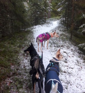Suomessa saa patikoida metsissä kovimpienkin koronarajoitusten aikaan. Saa kuljeskella ja katsella vaikka luontoa ja näyteikkunoita. Se vaan, että kuljeskelu ei minua Suomessa paljoa kiinnosta marraskuusta maaliskuulle ja se on pitkä aika se. Pakkasten aikaan tuskin pakkaamme koiriamme autoon ja lähdemme kovin kauas kävelemään, koska pakkaspatikat jäävät lyhyiksi. Suomen talvi on mielestäni siis aivan hanurista, olen kyllästynyt Suomen sulkeutuneisuuteen ja pimeyteen talvisin, liukkauteen ja tähän samaan vanhaan meininkiin muutenkin. Keväällä 2019 uhosinkin edellisen talven olleen viimeinen talvi Suomessa. Enpä olisi silloin uskonut, että tulee tällainen korona, joka lukitsisi meidät sisätiloihin missä tahansa maailman kolkassa.