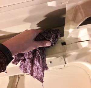 Ennen eristysten asentamista auto olisi hyvä puhdistaa, koska siellä on varmasti kaikenlaista tahmaa edellisen käyttäjän jäljiltä. Liimakin toimii paremmin puhtaalla pinnalla. Imuroimme ja pyyhimme pinnat, eli ensin pyyhimme enimmät pölyt pois ja sitten käytimme vielä yleispuhdistysainetta. Jotkut ihmiset kai harrastavat pintojen desinfioimistakin, mutta vaikuttaa ettei Suomessa ole semmoista puhdistusalkoholia niin hyvin myynnissä kuin Espanjassa ja Thaimaassa. Klooria emme halunneet käyttää, kai pelkäsin sen tyyliin syövyttävän maalit seinistä. En tiedä, mutta veikkaan että desinfioinnilla yritetään saada mahdolliset autossa valmiiksi olleet homeitiöt tms. pois tai ehkä vain halutaan autosta superpuhdas. Me emme siis desinfioineet ja huomasimme ettei tuo yksi siivouskerta tosiaankaan riittänyt, koska riivimme ekovillasta palasia ja siitä tuli paljon pölyä. Muutenkin koko eristämisprojekti kesti meillä kuukauden, kun välillä loppui materiaalit, kävimme reissussa ja oli muuta tekemistä. Eikä meillä mikään kiire olekaan saada autoa valmiiksi, koska emme lähdekään sillä talveksi Espanjaan.