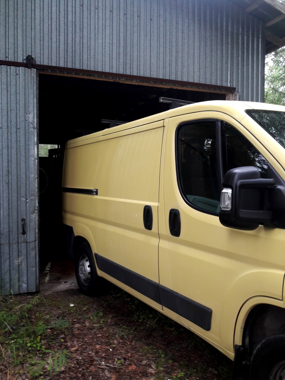 Pakettiauton laittaminen olisi aika hankalaa, jos ei olisi jotain tallia, missä tehdä. Meillä on tallissa pari jalkalamppua valaisuun, eristeiden leikkaamiselle paikka ja siellä säilytämme eristeitä ja työkaluja. Tämän avulla voimme työskennellä sateellakin.