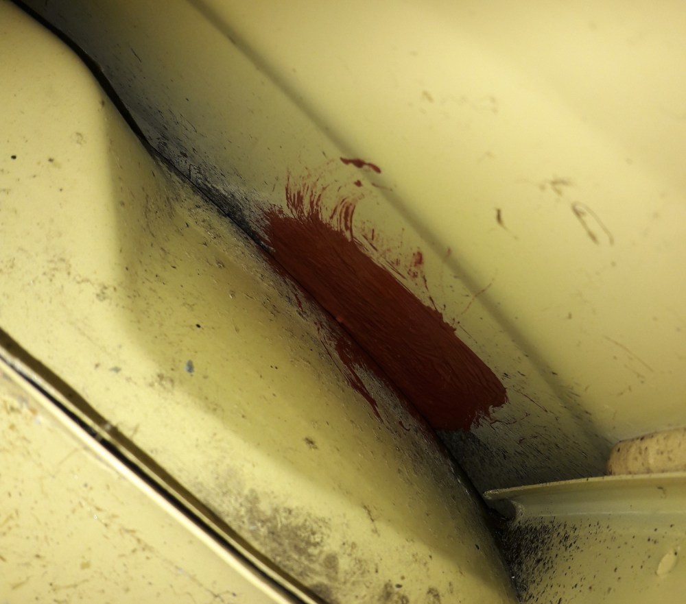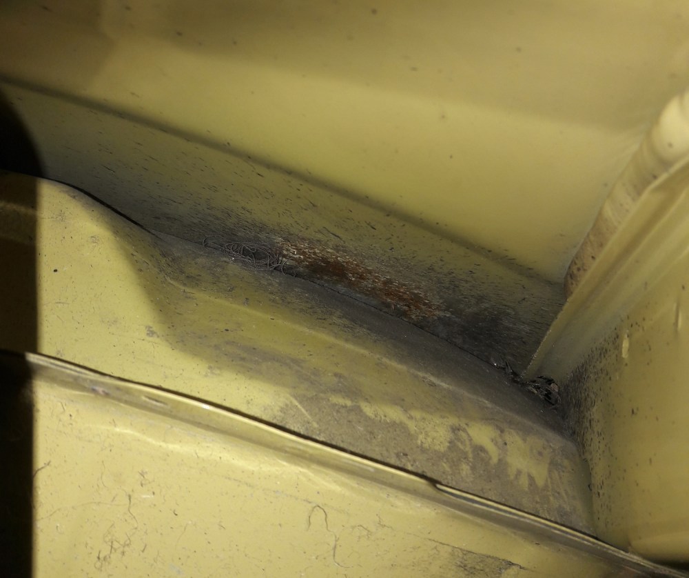 Toisen rengaskotelon takaa löytyi hieman ruostetta. Rapsuttelin kohtaa metallilastalla ja yriti puhdistaa siitä liat.