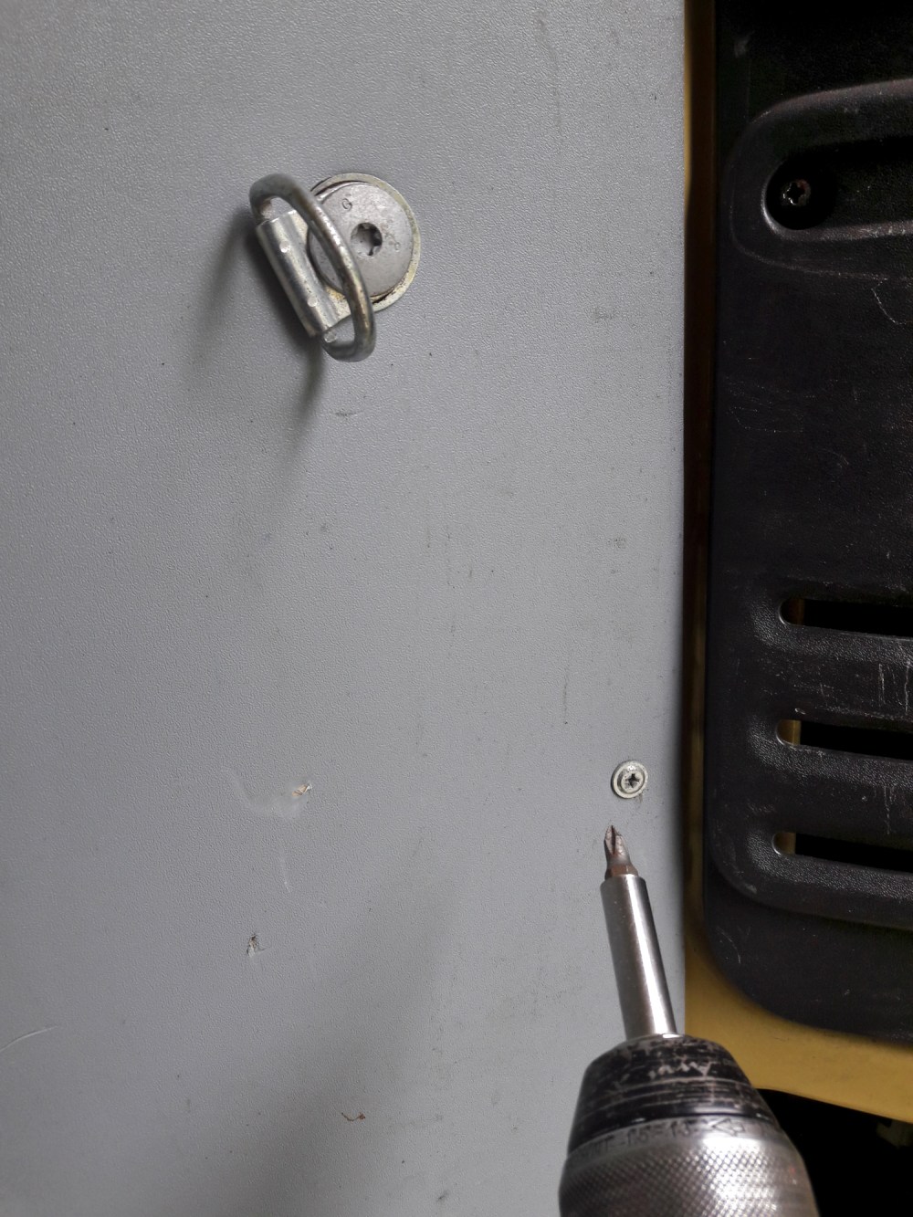 Tavaratilan vanerilevyt ovat ruuveilla kiinni, joten irrotimme ne ja eristysten laittamisen jälkeen ruuvasimme ne takaisin paikoilleen.
