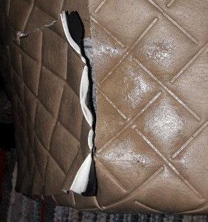 Päällystin toisen rengaskotelon jonkinlaisella tekonahalla, kun semmoista löytyi varastosta. Liimasin tehonahkaa siis äänieristelevykerroksen päälle. Kahden viikon päästä huomasin, ettei sprayliimaus ollut kestänyt ja tekonahka repsotti. Aloin kyseenalaistaa koko sprayliiman toimivuuden ja mietin pitäisikö verhoiluhuovat sittenkin kiinnittää seiniin kontaktiliimalla sprayliiman sijaan. Pitäisi kuitenkin lukea pakkausten selosteet paremmin, tuossa purkissa luki että ei suositella tekonahkaan. Liimasimme sitten verhoiluhuovat paikoilleen sprayliimalla ja ainakin toistaiseksi tulos vaikuttaa hyvältä.