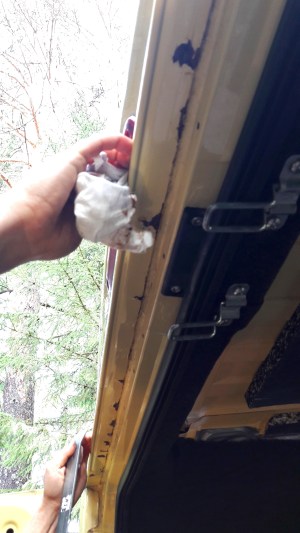 Nyt syyskuussa on satanut välillä paljon ja pakettiauton tavaratilaan on tullut vettä eri paikoista ja olemme tietysti yrittäneet selvittää mistä sitä vuotaa. Sivulla on liukuovi ja sieltä tuntuu tulevan vettä. Ehkä en ole vain sulkenut ovea tarpeeksi jämäkästi.