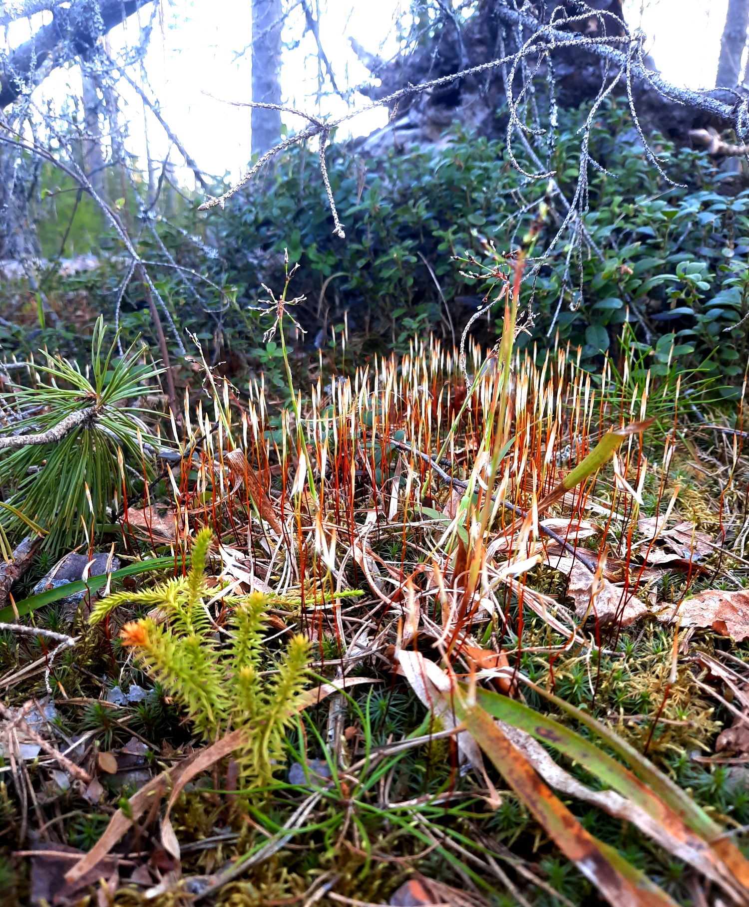 Osassa kuvia näkyy myös metsäkerrossammalen itiöpesäkkeitä.