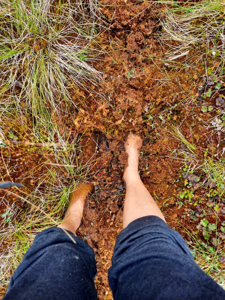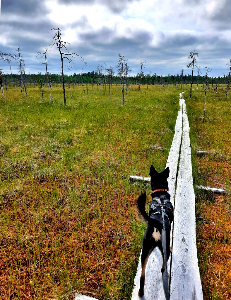 Meiltä kesti menomatkalla jopa 50 min päästä pitkospuiden äärelle. Harhailin vähän, kun aina ei ollut polun merkkejä, joita ilman oikeaa polkua ei tosiaankaan voi löytää, koska alkumatkalla oli muitakin hiekkateitä ja metsäpolkuja. Pitkokset eivät mene kuten tässä kartassa on esitelty, vaan ne alkoivat paljon myöhemmin. Pitkospuut olivat välillä aivan hajalla ja kerran ne loppuivat keskellä suota, jolloin otin kengät pois jalasta ja kävelin paljain jaloin suolla. Polkua taisi ylläpitää kyläyhdistys tms., paljon kuitenkin kiitoksia, että tällainenkin polku on tallattavissa!