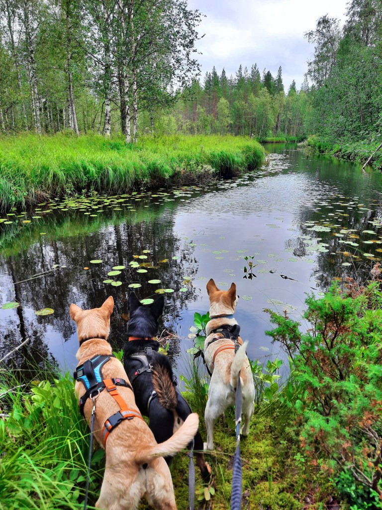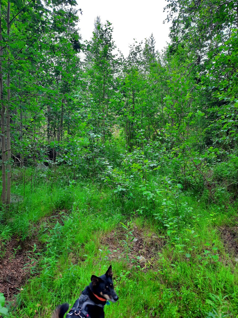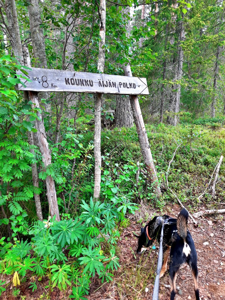 Kävelin koirieni kanssa Koukku-Äijän polkua vain sen puoleen väliin noin 4 km päähän. Aloitimme kävelemisen reitin itäpäästä eli Hermolantie 4:n lähtöpaikasta, jatkoimme Koukku-Äijän kämpälle asti ja kävelimme takaisin. Katso Koukku-Äijän polun opaskartta >>