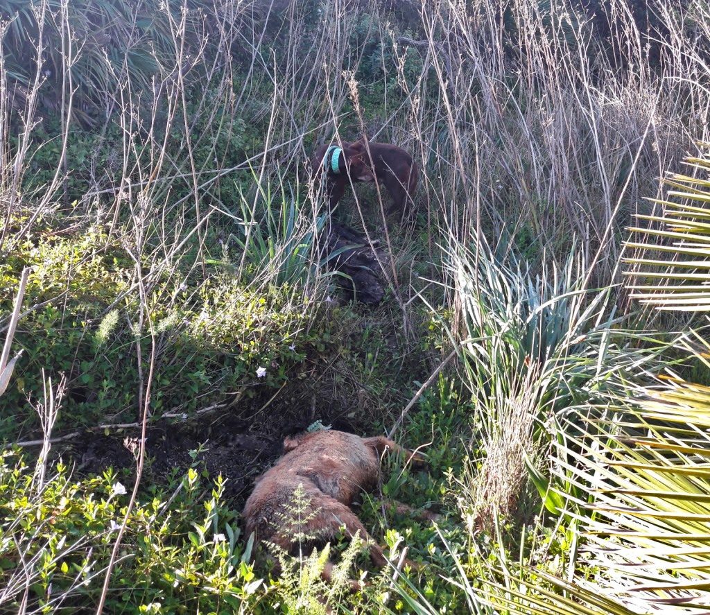 Maaliskuussa löysin polun vierestä pusikoista koirien ruumiita, yhteensä kolme tai neljä. Nämä olivat noin sadan metrin päässä metsästyskoirien vuokrauspaikasta ja niillä oli metsästyspaikan leveät muoviset kaulapannat kaulassaan.