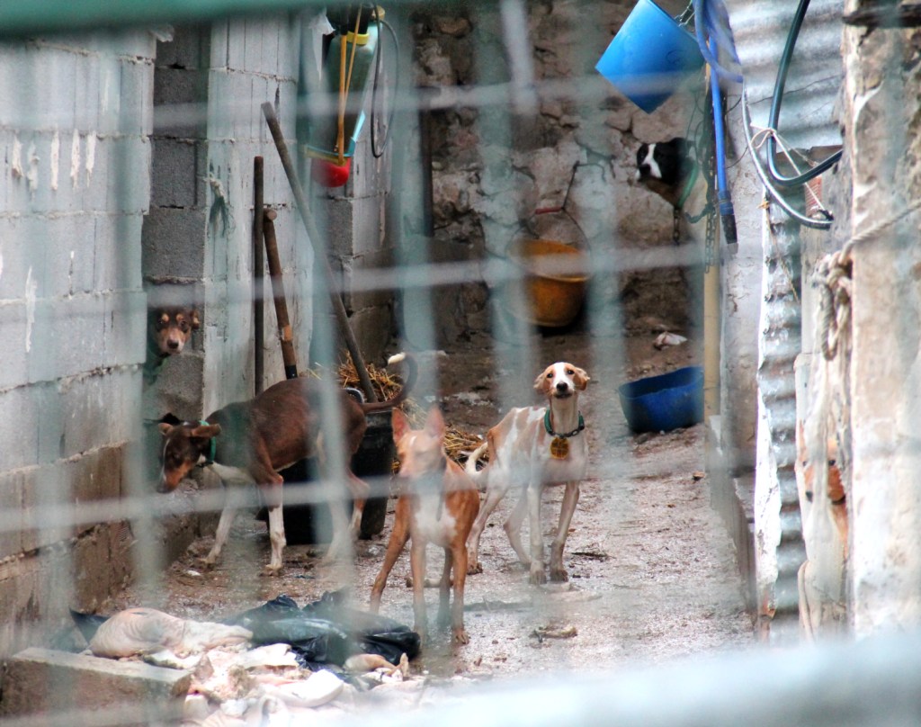 Nämä pihamme koiranpitosysteemit olivat henkilön, joka toimi eri rotuisten koirien kasvattajana. Espanjassa koirien kasvattajien ”kennelit” saattavat sijaita taloissa ja tonteilla, joissa ei asu kukaan ihminen, vaan koirien luona käydään vain pistäytymässä. Sitä en tiedä, millaiset paperit tällaisten kasvattajien koirilla on. On tietysti toisenlaisiakin kasvattajia, mutta tämmöistäkin on.