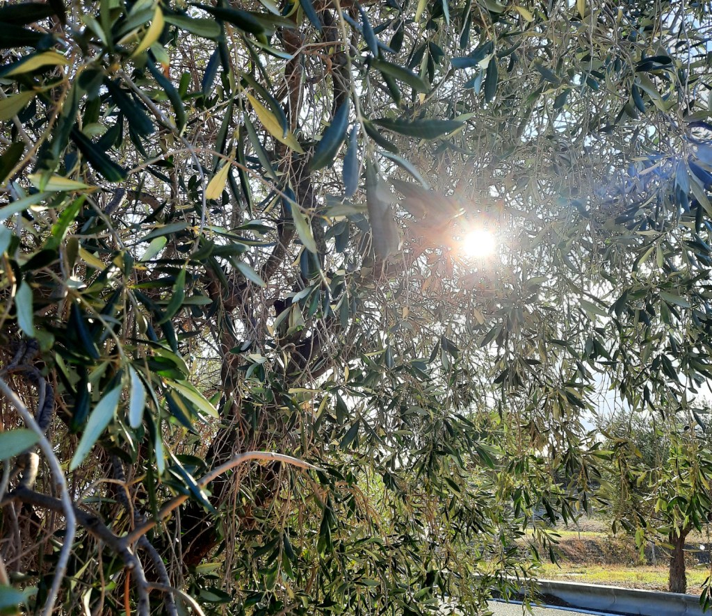 Yritin kaukaa aire-levähdysalueelta kännykuvata idyllisen näköistä Orschwillerin kylää ja sen kirkkoa kukkuloiden siimeksessä. Jonkun airen vieressä oli iso ränsistynyt motellialue. Netistä löytyi tieto, että se oli lopettanut vasta korona-aikaan, joten tosi nopeasti oli siellä laitettu kaikki paskaksi. Aire des Chères Ouestilla ennen Lyonia olisi ollut hyvin käveltävää Azergues-joen vierellä, mutta löysin pääsyn joen varrelle vasta pimeän tultua. Huoltoasemat ja airet ovat aina aidattuja (kai jotta eläimet eivät pääse teille), mutta tuolla lopulta löytyi pari porttia, joiden kautta pääsi joen varrelle kävelemään. Ajoimme Lyonin läpi tietysti aamuruuhkan aikaan. Kartassa ei näy mitään selkeää Lyonin kaukaa kiertävää yhtenäistä ohitustietä, joten jatkoimme Lyonin läpi menevää A6-tietä. En tiedä mikä olisi paras vaihtoehto. Joskus olemme ohittaneet Lyonin itäpuolelta muita teitä pitkin ja kai se meni ihan hyvin. Joskus Lyonin jälkeen alkoi aurinkoiset joulukuun alun kelit ja piti kaivaa aurinkolasitkin silmille. Jossain Avignonin kohdalla huomattiin, kun maasto muuttui ja alkoi Välimeren kasvillisuusvyöhyke. Se oli jotenkin ihanan tuttua ja silti eksoottista. Tässä oliivipuu pysähdysalueella. Se on hieno tunne, kun Pyreneiden vuoristo tulee näkyviin. Myös ensimmäinen näkymä Välimerelle on hyvä hetki.