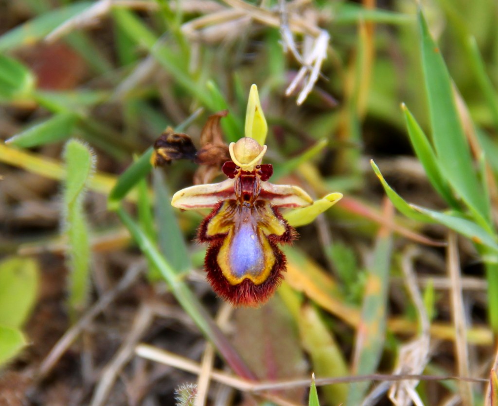Näitä ophrys scolopax -villiorkideoja oli vuonna 2020 Antequerassa La Alhajuela -metsän polun varrella melko paljon. Tuo kirjava osuus on aika suloinen, kuin töpökätinen nukke.