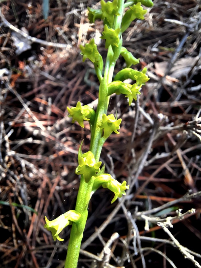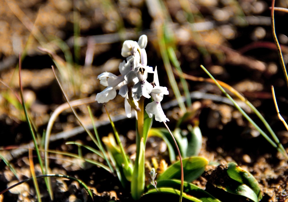 Tässä orhossa on kirkiömäisiä lehtiä, kun monilla orhoilla on paljon tukevampi varsi ja varren lehdet.