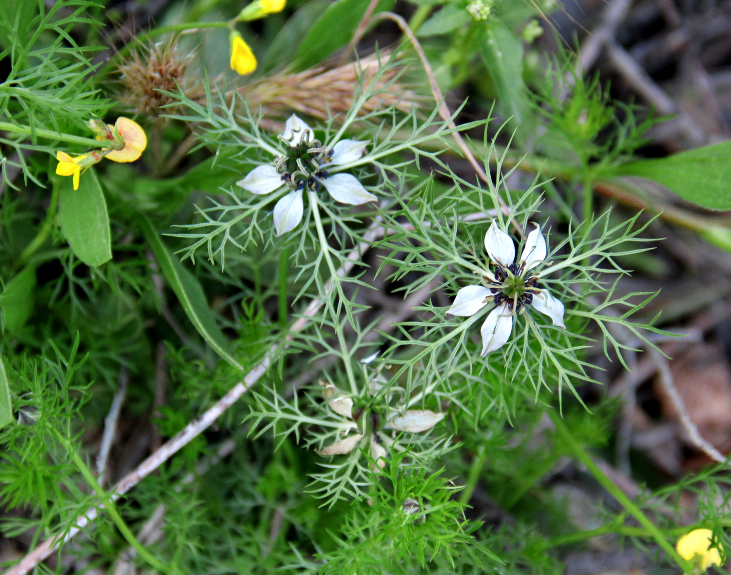 Todennäköisesti tarhaneito (nigella damascena). Tämä on ehkä ihanin kukka, jonka olen täällä nähnyt. Siinä on niin monia tasoja, hyvät värit ja kotakin on upea.