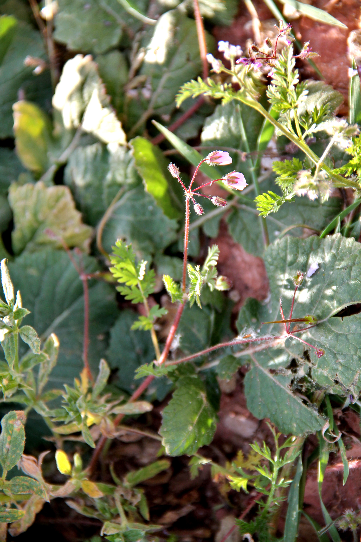 Tämä on ehkä eri kurjennokka kuin edelliset, koska lehdet näyttäisivät röpelöisemmiltä. Varmaankin puikkokurjennokka (erodium ciconium).