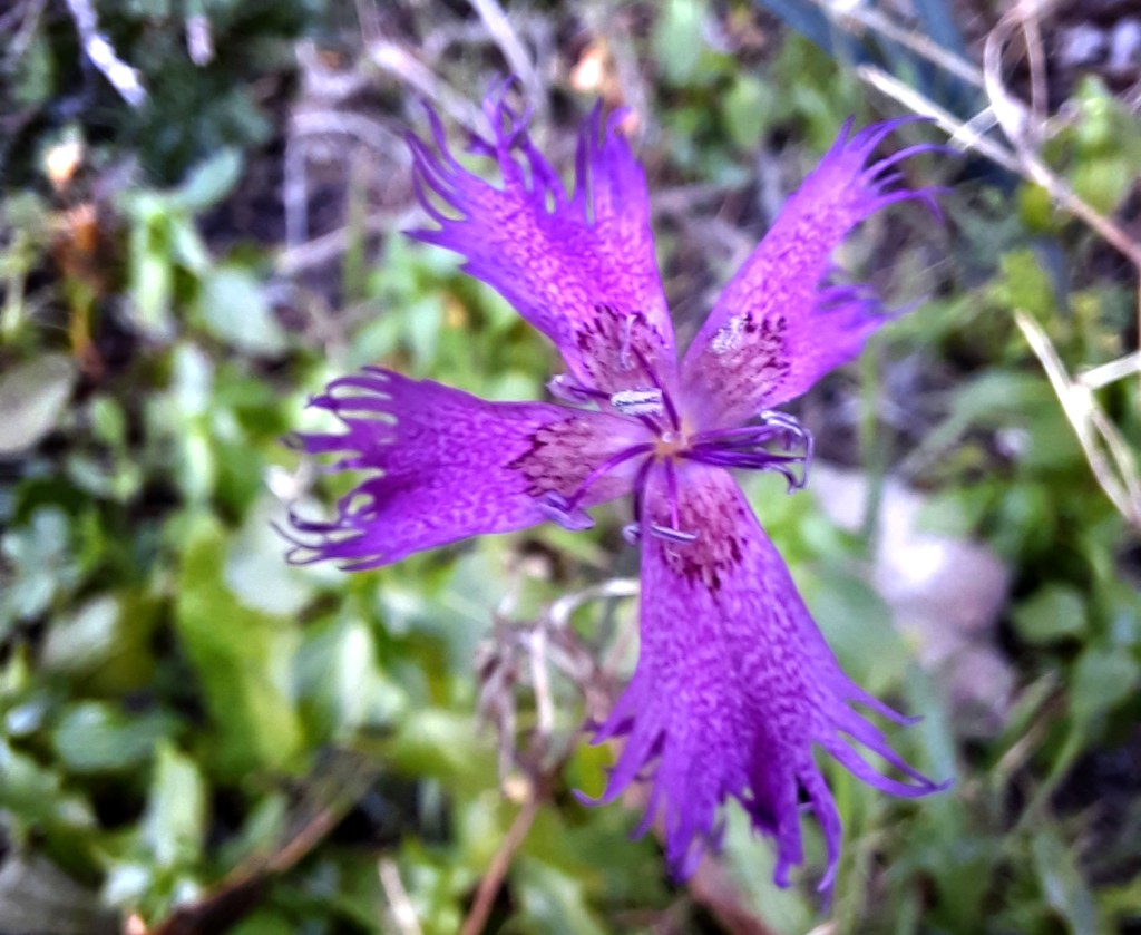 Neilikka Dianthus lusitanus, La clavelina lusitana. Kuvattu Mijas-vuorella 6.1.2023.Epätarkka kuva neilikasta Dianthus lusitanus, joka on erisävyinen kuin edellinen versio.