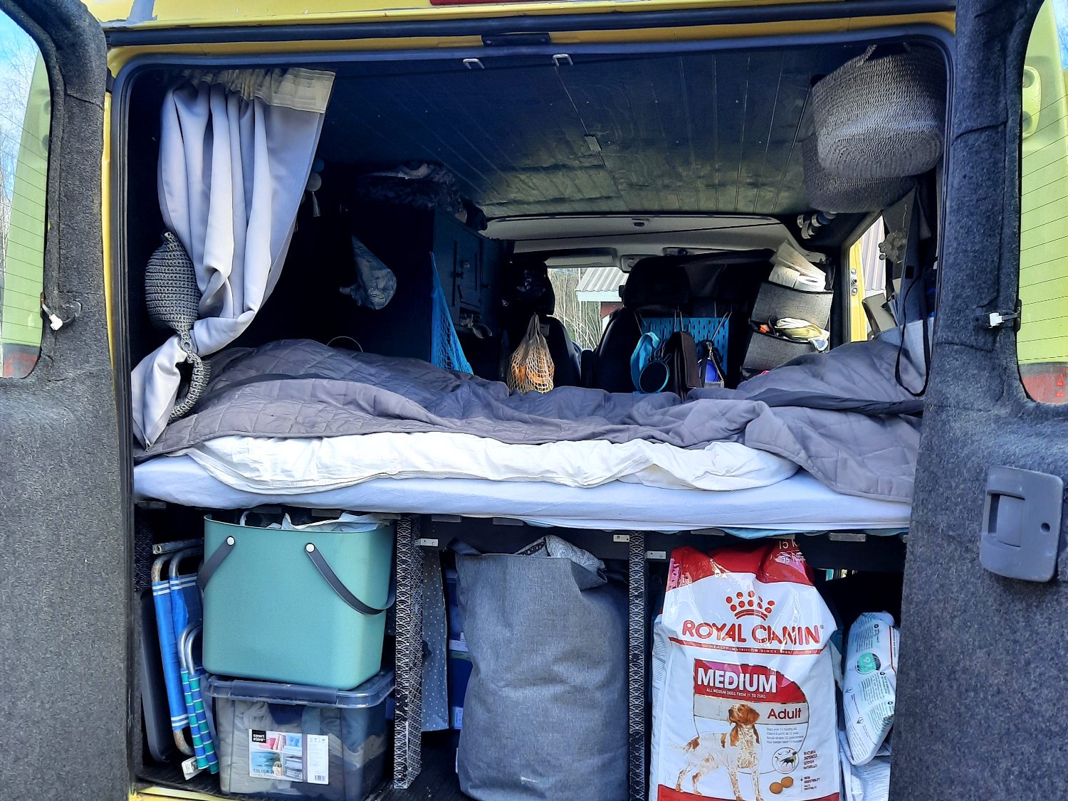 Majotuimme yleensä paikoissa, joita ei tarvinnut itse siivota – eipä tarvinnut siivousvälineitäkään! Nythän pakussamme Espanjaan kulkee jopa varsipölynimuri, kun imurit eivät ole kämppien vakiokalusteita.